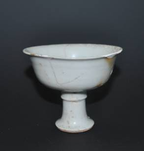 其特征:撇口,弧腹,竹节形高足,杯与足之间的胎泥粘接,内外满釉,釉色卵白状,通体素净,无任何纹饰,属元朝中央军事机构枢密院在景德镇定烧的官窑瓷器。人称“枢府瓷”或“军窑瓷”。
