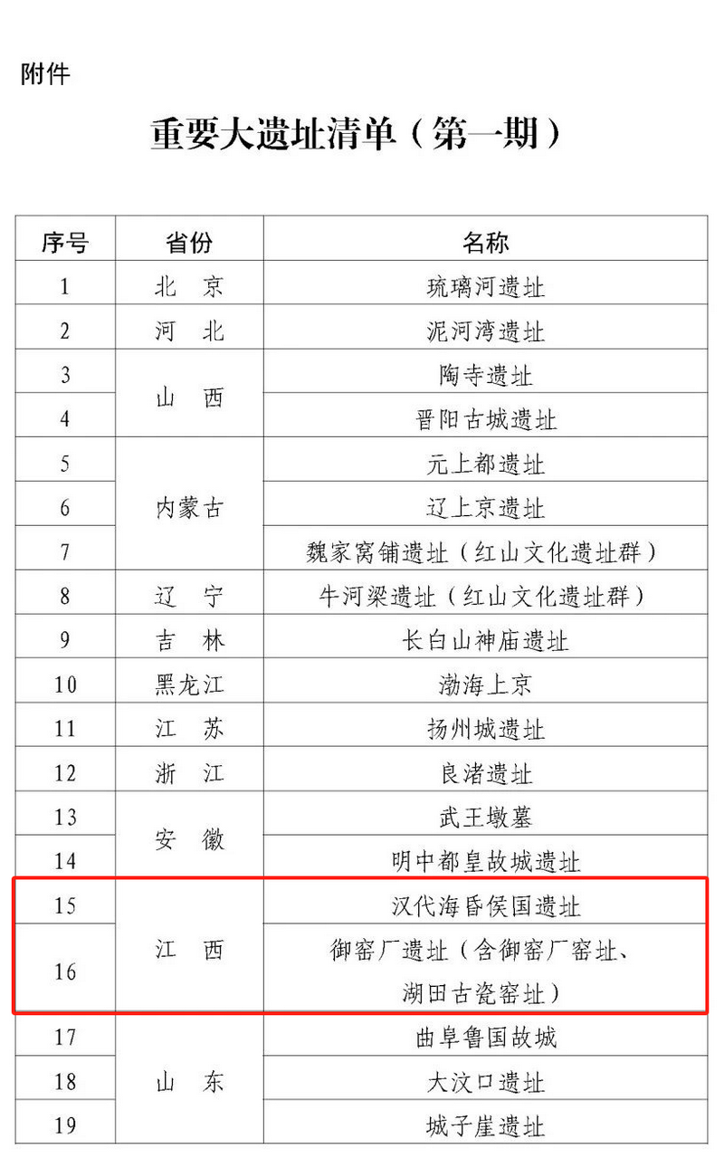 重要大遗址清单(第一期)