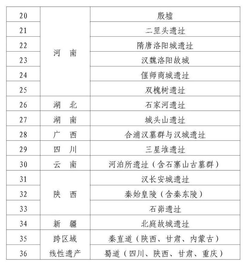 全国共36个遗址上榜